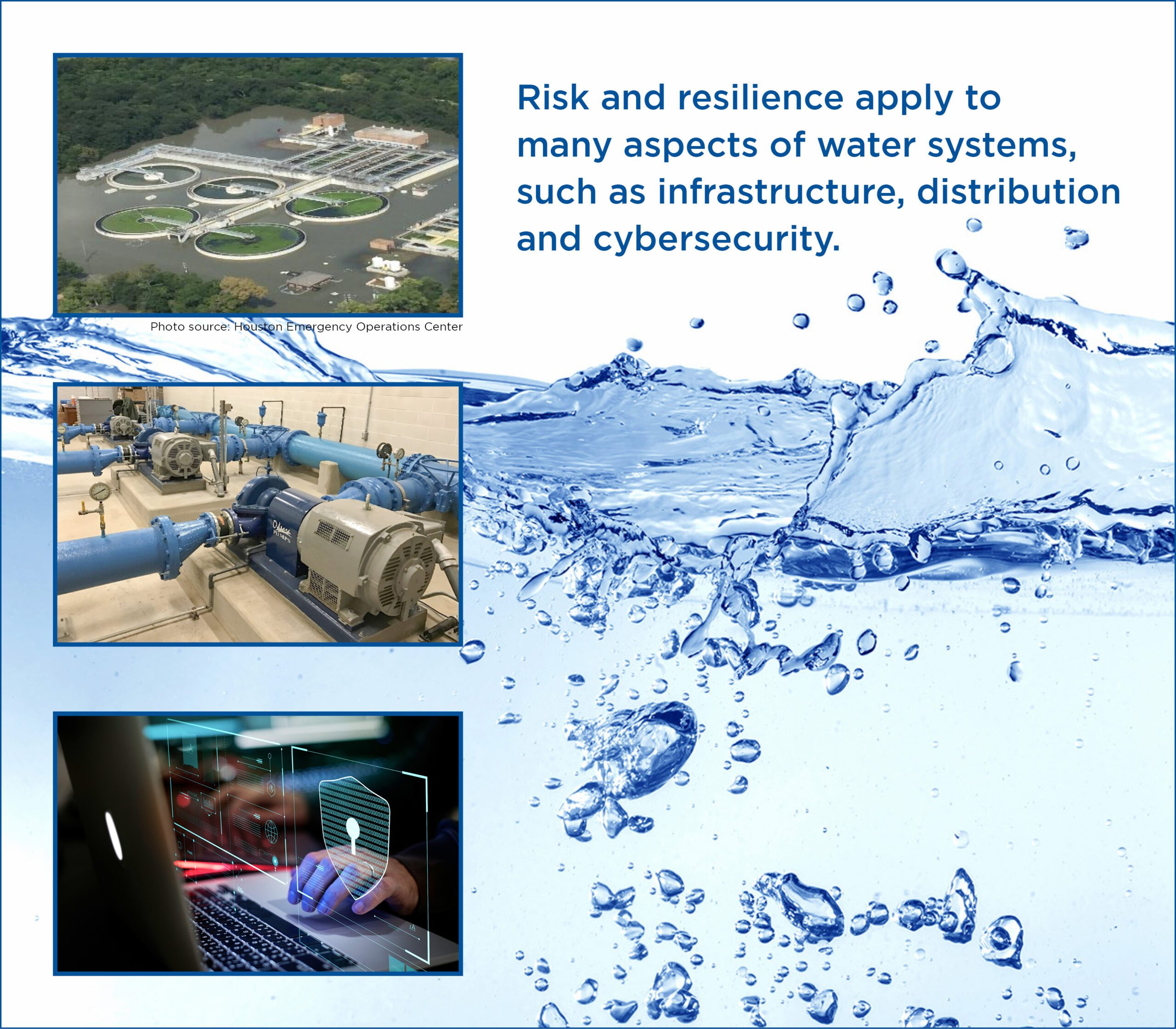 Halff’s staff includes professionals who have completed the Utility Risk and Resilience Certificate Program through the American Water Works Association (AWWA). Our methods for preparing the risk and resilience assessment and updating the ERP will provide certain liability protections for water utilities by building on standards from the Support Anti-Terrorism by Fostering Effective Technologies (SAFETY) Act that are recognized as qualified anti-terrorism technologies by the Department of Homeland Security.